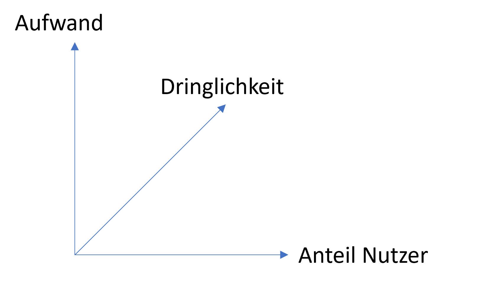 Wert: Der Mehrwert eines Projekts wird anhand des Anteils der Nutzer gemessen, die davon profitieren. Dieser Anteil wird in vier Stufen unterteilt: